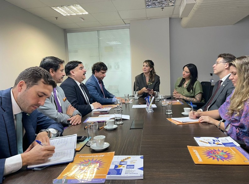 No último dia 25 de setembro, o gerente da Assessoria de Gestão das Representações (AGR), Sérgio Henrique, e a analista Rafaela Souza participaram, em conjunto com a chefe de gabinete da Fecomércio-DF, Caetana Franarin, e a assessora internacional Bárbara Teles, da recepção da delegação da Câmara Bilateral Mercosul-Asean, que teve como propósito discutir as possibilidades de adensamento do comércio de bens, serviços e turismo entre os blocos.