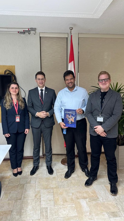 No dia 18 de setembro, o gerente da Assessoria de Gestão das Representações (AGR), Sérgio Henrique, e a analista Rafaela Souza participaram de uma audiência na Embaixada do Canadá com o conselheiro Ron Klappholz e o oficial de Diplomacia Marcos Paulo Britto. O objetivo do encontro foi prospectar as oportunidades de cooperação no âmbito do comércio de bens, serviços e turismo, que se fortalecem no contexto da retomada das negociações do Acordo de Livre Comércio entre Mercosul e Canadá. Segundo os representantes da AGR, também foram discutidas as possibilidades de cooperação nas áreas de educação, formação profissional e cultura.