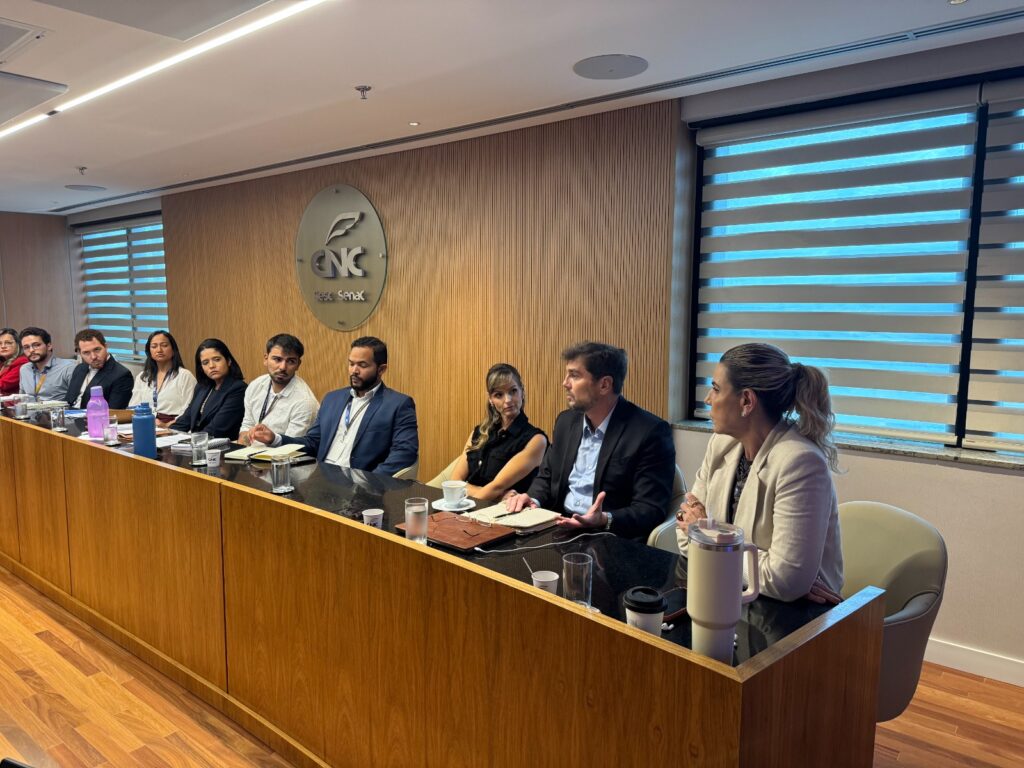 Durante a reunião, o coordenador do Legislativo da DRI, Felipe Miranda, apresentou a estrutura organizacional e as pautas prioritárias do Sistema CNC–Sesc–Senac. Ele lembrou que a CNC possui capilaridade nacional, com representação empresarial em praticamente todos os municípios brasileiros, além das 11 Câmaras Setoriais que tratam de temas específicos e transversais, como Combustíveis, Gêneros Alimentícios, Serviços, Imóveis, Farmácia, Óptica, Veículos, Materiais de Construção, Mulheres, Tecnologia e Inovação e Comércio Exterior.