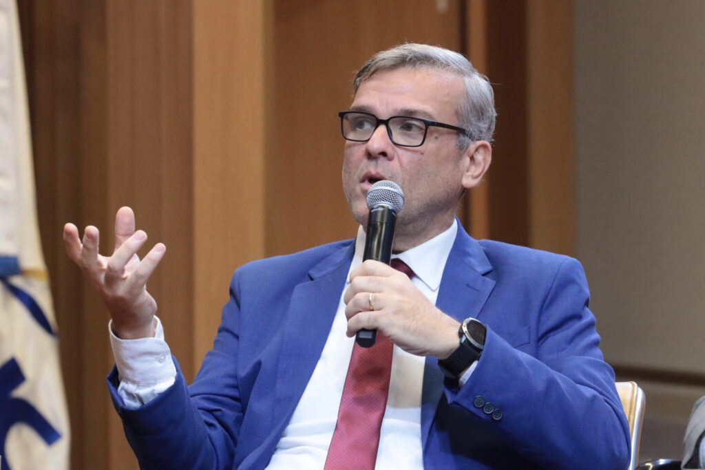 Felipe Miranda abordou os impactos do tarifaço e detalhou o programa Brasil Soberano. “Foi criado o programa Brasil Soberano, com uma linha de crédito de R$ 30 bilhões para fomento às exportações, incluindo benefícios específicos para pequenas empresas, como ressarcimento de até 6% sobre valores exportados e ampliação de prazos para pagamento.”
