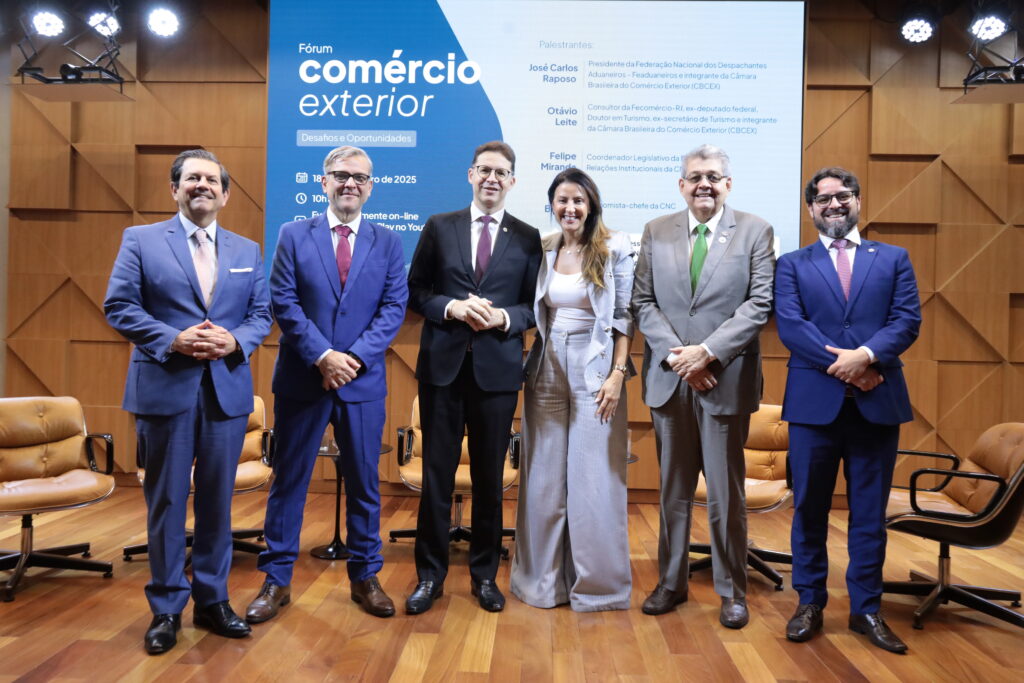 O Fórum contou com o painel composto por José Carlos Raposo, presidente da Feaduaneiros e integrante da Câmara Brasileira do Comércio Exterior (CBCEX); Otávio Leite, consultor da Fecomércio-RJ; Fabio Bentes, economista-chefe da CNC; e Felipe Miranda, coordenador Legislativo da Diretoria de Relações Institucionais da CNC. A mediação foi conduzida pela jornalista Karina Praça, da Gerência Executiva de Comunicação da CNC.