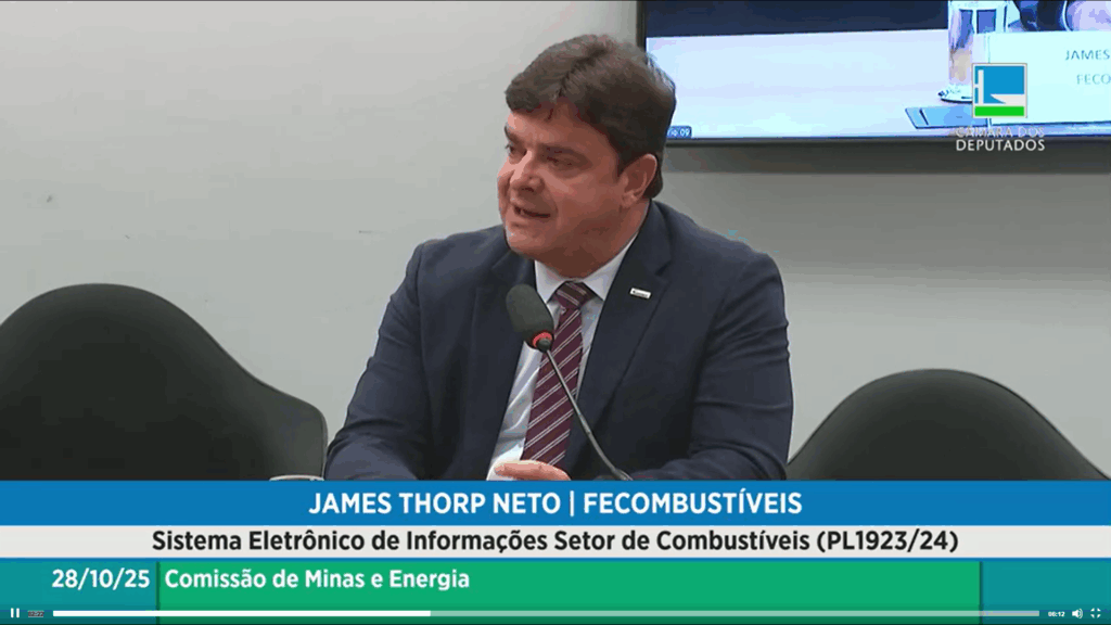 Na audiência pública extraordinária realizada pela Comissão de Minas e Energia da Câmara dos Deputados, em 28 de outubro de 2025, o presidente da Federação Nacional do Comércio de Combustíveis e de Lubrificantes (Fecombustíveis) e coordenador da Câmara Brasileira do Comércio de Combustíveis (CBCC) da Confederação Nacional do Comércio de Bens, Serviços e Turismo (CNC), James Thorp Neto, destacou o posicionamento do Sistema Comércio em relação ao Projeto de Lei (PL) nº 1.923/2024.