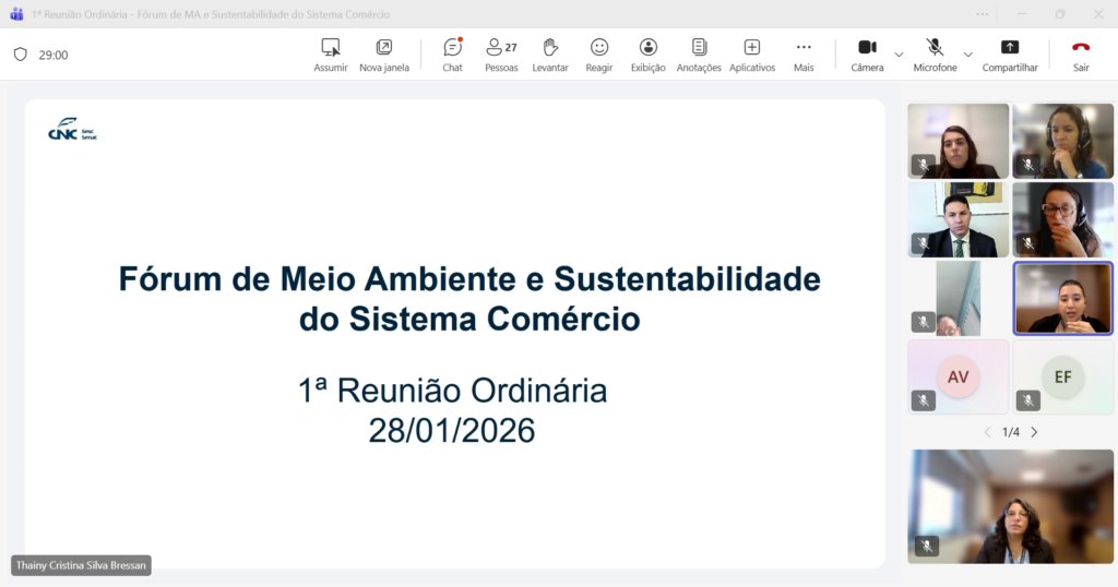 Nesta quarta-feira (28), foi realizada a primeira reunião ordinária do Fórum de Meio Ambiente e Sustentabilidade do Sistema Comércio, marco que inaugura oficialmente o ciclo de trabalho de 2026 do espaço que substitui e amplia o antigo Grupo Técnico de Trabalho sobre Meio Ambiente (GTT-MA).