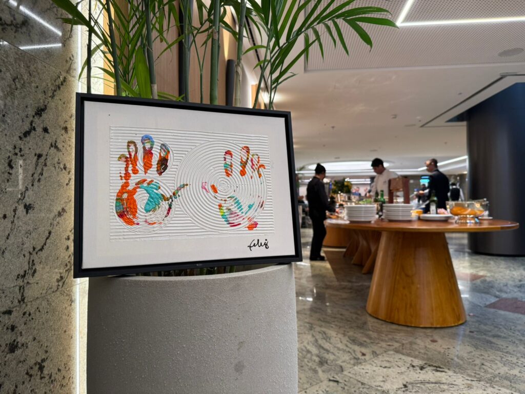 A tela, entregue em clima de emoção, foi descrita por ele com sensibilidade: “A tela é em alto relevo pois mostra as curvas e retas da nossa vida”, disse o diretor da CNC. “A ação reforça o compromisso do Sistema Comércio em valorizar a arte, a cultura e a história de quem constrói diariamente o setor”, completou. Num ambiente de celebração institucional, o gesto trouxe leveza, beleza e significado, iluminando o espírito de serviço que marca os 80 anos da Confederação.