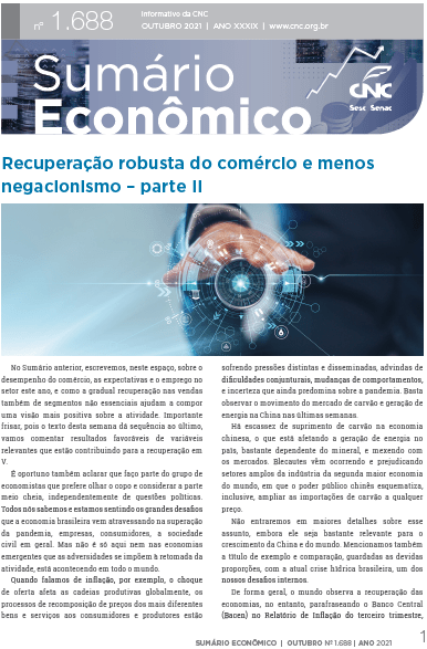 Recuperação robusta do comércio e menos negacionismo – Parte II – No Sumário anterior, escrevemos, neste espaço, sobre o desempenho do comércio, as expectativas e o emprego no setor este ano, e como a gradual recuperação nas vendas também de segmentos não essenciais ajudam a compor uma visão mais positiva sobre a atividade. Importante frisar, pois o texto desta semana dá sequência ao último, vamos comentar resultados favoráveis de variáveis relevantes que estão contribuindo para a recuperação em V.