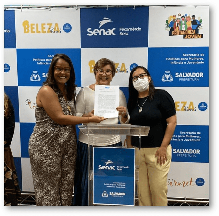 Os detalhes do contrato para a realização das atividades, que integram os programas Mulher em Foco e Protagoniza Jovem, foram divulgados pela vice-prefeita Ana Paula Matos, pela diretora regional do Senac-BA, Marina Almeida, e pela titular da Secretaria de Política para Mulheres, Infância e Juventude (SPMJ), Fernanda Lordêlo, em uma ação que ocorreu na sede do Senac Aquidabã, na Baixa dos Sapateiros.