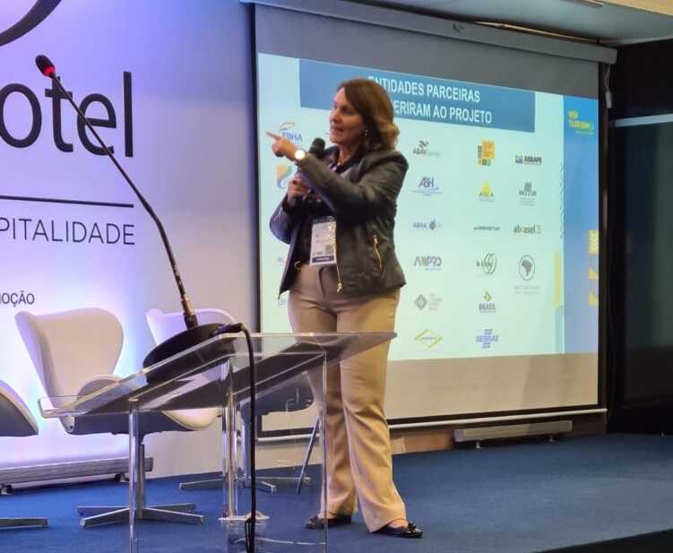 Após o corte de fita da Equipotel  – um dos maiores eventos de equipamentos e serviços de hotelaria da América Latina, no dia 22 de novembro, na Expo-SP, em São Paulo, a técnica da Confederação Nacional do Comércio de Bens, Serviços e Turismo (CNC) Márcia Cristina Alves apresentou, no espaço Vila da Hospitalidade, as linhas principais do projeto Vai Turismo  Rumo ao Futuro.
